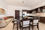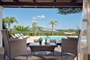 Next step and you are found in the kitchen area where dining facilities with another living area and fully equipped kitchen with oven and hob, fridge, dishwasher and all utensils that will let you prepare your meals while having great pool views! The villa features a/c units in all stages!
